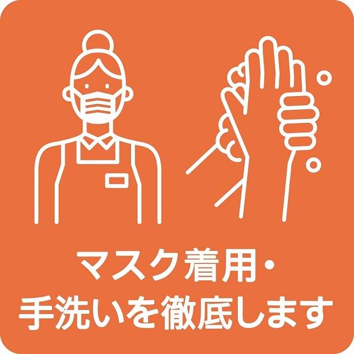 全スタッフ、マスクの着用と手洗い、手指の消毒を徹底しております。